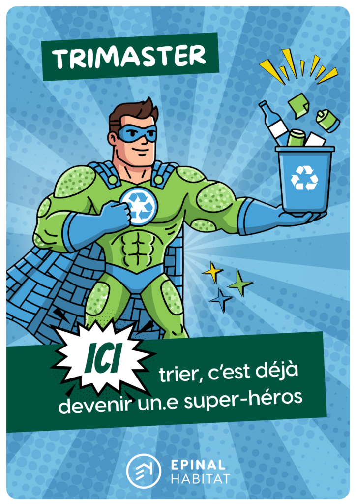 Chaque carte met en lumière un super-pouvoir du quotidien : bien trier ses déchets, ne pas jeter de mégots au sol, éviter les dépôts sauvages, ne rien jeter par la fenêtre… Autant de gestes simples qui font toute la différence pour le respect du cadre de vie.